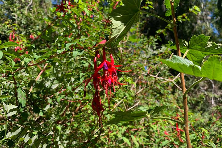 Se pueden apreciar flora autóctona patagónica como ñires, cipreses, mutisias, helechos, aljabas, etc.